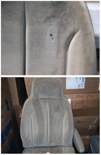 In this example, the cloth interior of this vehicle had cigarette burns and miscellaneous wears and tears throughout the seating.